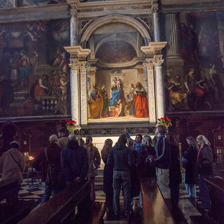 This, our second week in Venice, the group visited The Accademia Gallery, The Frari, San Zaccaria and Salute churches and Palazzo Grimani. Susan and Louisa showed what is essentially some of the major artists and architects to the group, bathed in gorgeous colour (that made up for the rather cold and misty mornings!)